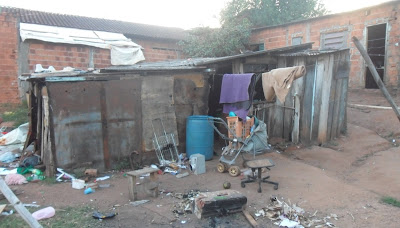 I was in Brazil, in city called Bauru in the state of Sao Paulo. We went into a favela, also called a community, and visited families there and prayed with them. I was translating for a team made up of Americans, Koreans and Germans. Most of the houses looked poor, to my Western eyes… in Brazil they use orange bricks that look like tiles and in poorer areas they leave them bare on the outside, making the streets look run down. Homes are often nicer inside than out. But that day one house in the favela stood out. It was made of wood, but so badly- just random planks of different sizes, broken down and dirty, stacked together, with an uneven corrugated iron roof. It looked like it would fall down if you rested against it. When we went inside, I could see huge gaps in the walls, although it was dim under the bare light bulb, and six children and their mother slept in three beds. The floor was dirt, and the smell was awful. Apparently when it rained, water came through the roof and ran through the holes in the walls. The worst thing was that there was no bathroom. They said they went to their neighbour’s house, but later on our friends from the church explained that they had to go outside and use plastic bags most of the time. The oldest child was a girl about twelve or thirteen; I couldn’t imagine a teenager coping in a house like that.